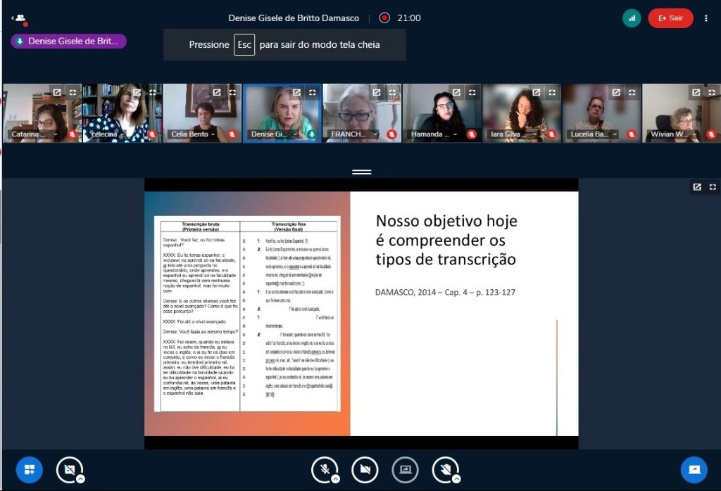 A professora Wivian Weller (UnB), coordenadora nacional da Rede Juvem, fez a abertura do mini-curso, seguido pela professora Denise Damasco (UnB), coordenadora regional do Distrito Federal, quem introduziu a temática do mini-curso, ressaltando o processo da passagem do texto oral ao texto escrito. A pesquisadora Hamanda Pontes, doutoranda na UnB, conduziu o restante do encontro, enfocando na questão da transcrição dos grupos de discussão.