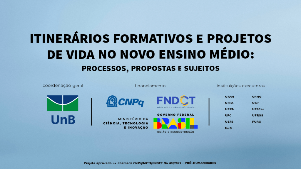 Projeto aprovado na chamada CNPq/MCTI/FNDCT No 40/2022 PRÓ-HUMANIDADES, Linha 3B – Políticas públicas para o desenvolvimento humano e social. O projeto está sendo desenvolvido pela Rede JUVEM – Juventude e Ensino Médio.